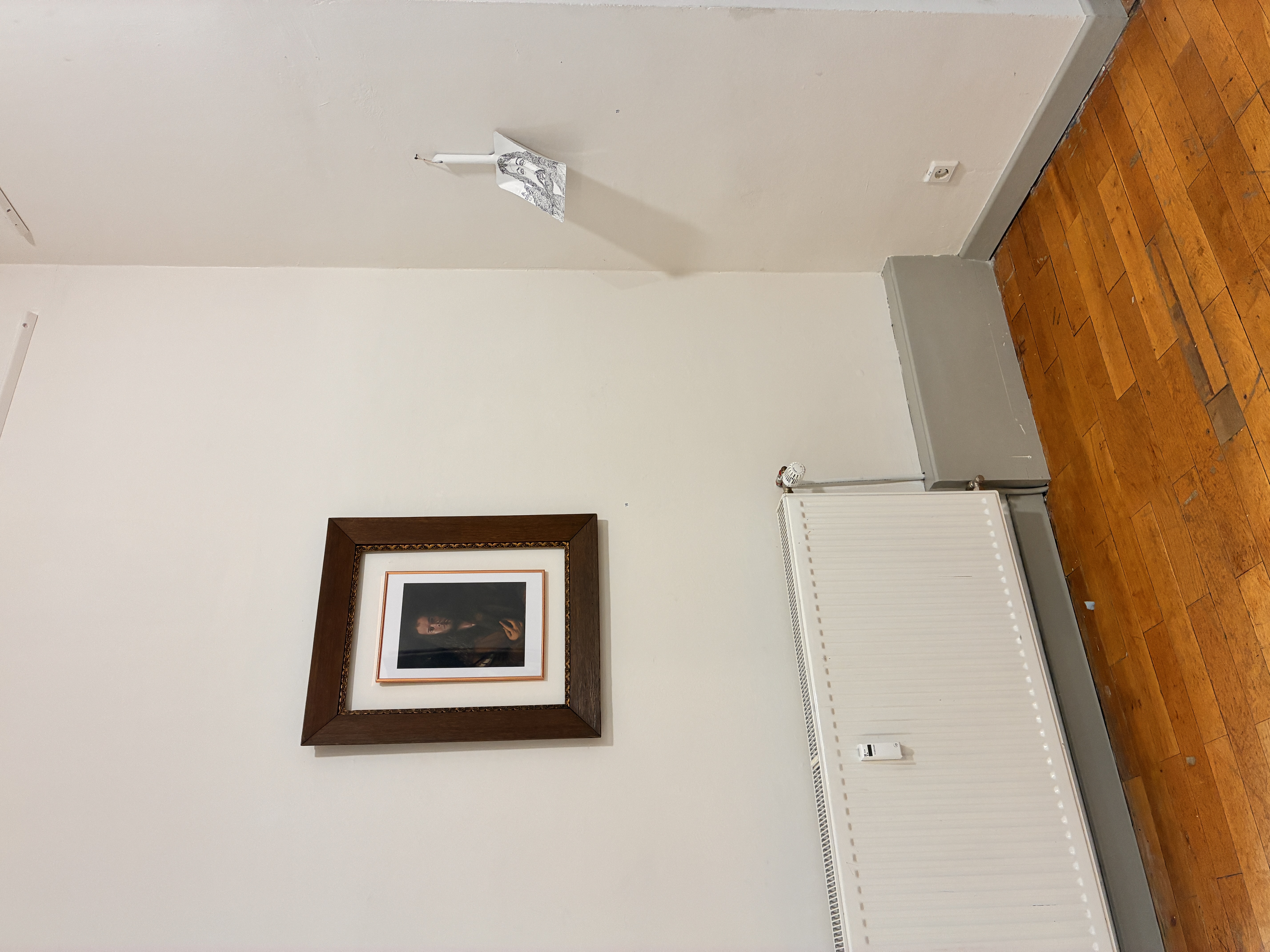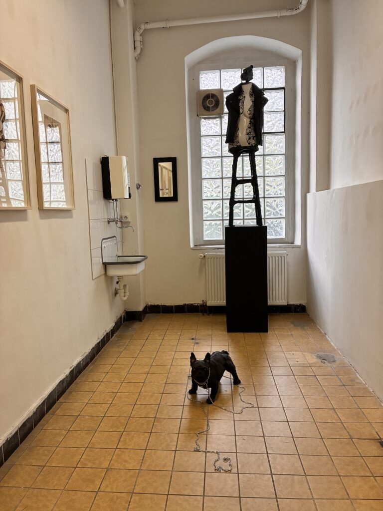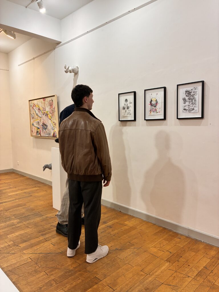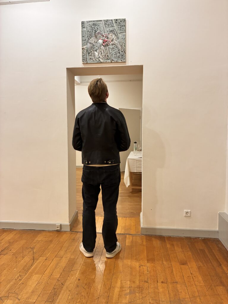 Albrecht Dürer (ich), Digitaldruck gerahmt von Thorsten SalamonSchattenarbeit I, Öl auf Leinwand von Thorsten SalamonPatrick vor „Überfahrene Taube“ von Thorsten Salamon