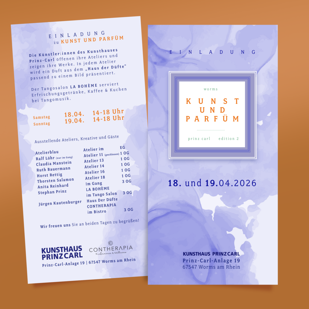 Am 18. und 19. April 2026 lädt das Kunsthaus Prinz Carl in Worms erneut zu einem besonderen Ausstellungserlebnis ein. Nach der erfolgreichen Premiere im vergangenen November geht „KUNST UND PARFÜM“ in die zweite Runde.